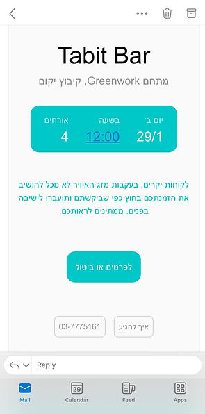 * להוספת שדרוגים לשליחת המייל ללקוח יש ליצור קשר עם מחלקת האירוח.
