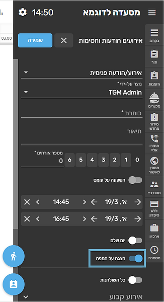 4. מדליקים את כפתור הצגה על המפה וההודעה תופיע על מפת השולחנות!